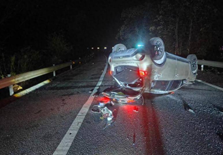 2025年12月3日23时04分许,桂林绕城高速阳朔与临桂方向分岔口,一起因分心驾驶引发的交通事故打破了夜间的宁静。民警接到群众报警后,第一时间赶赴事故现场,只见一辆小型轿车侧翻横亘在行车道中央,导致该路段车辆无法正常通行,而肇事司机却不在现场。