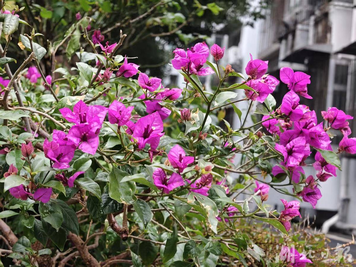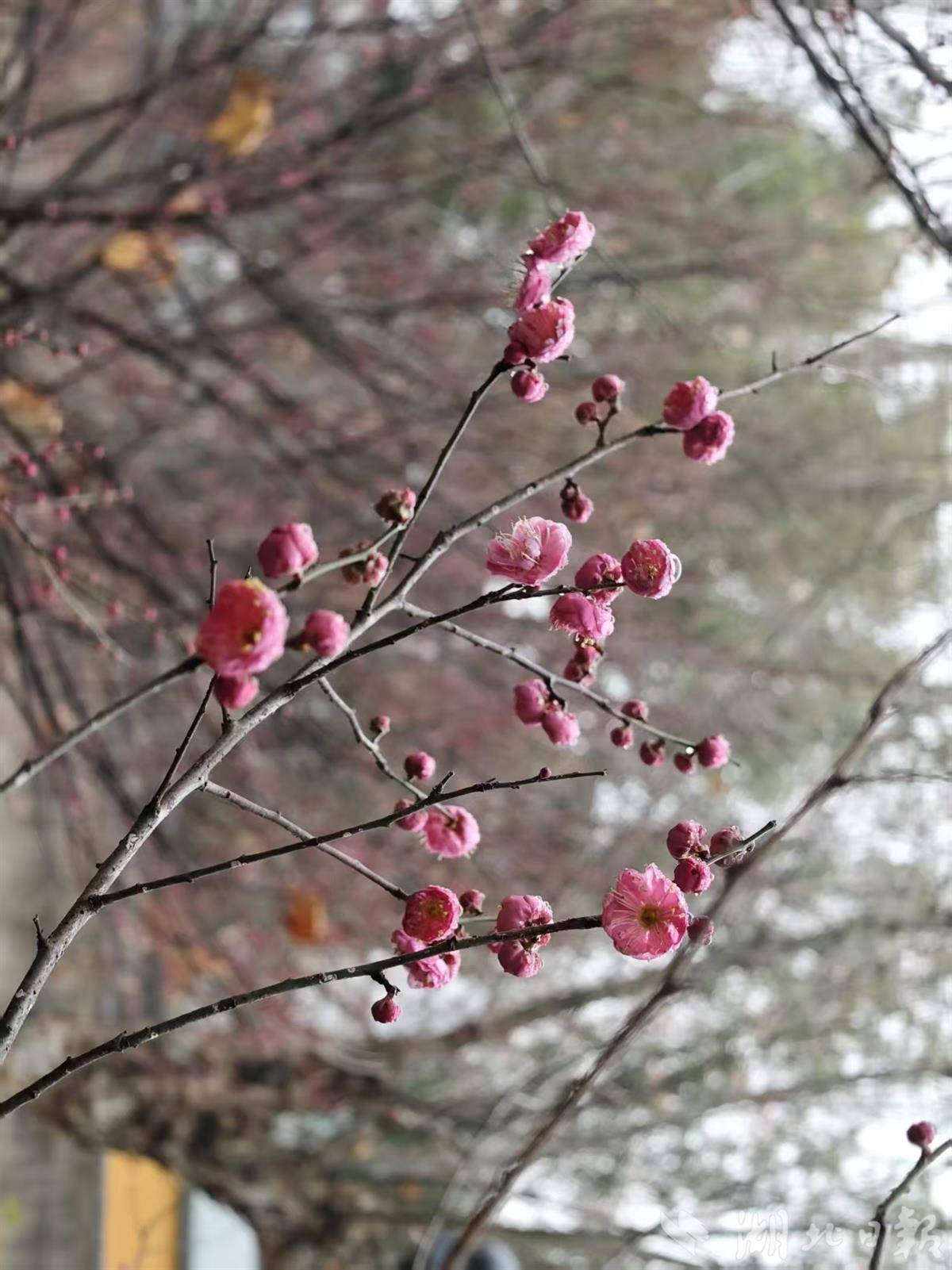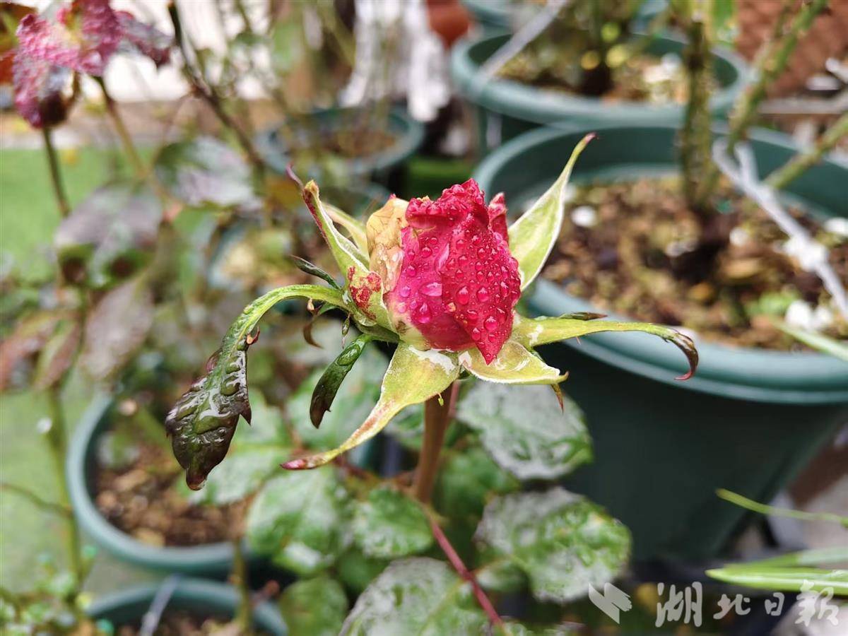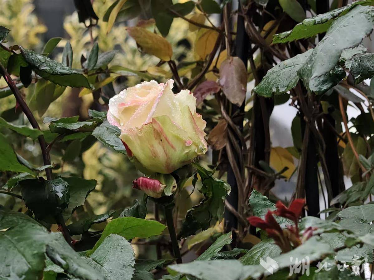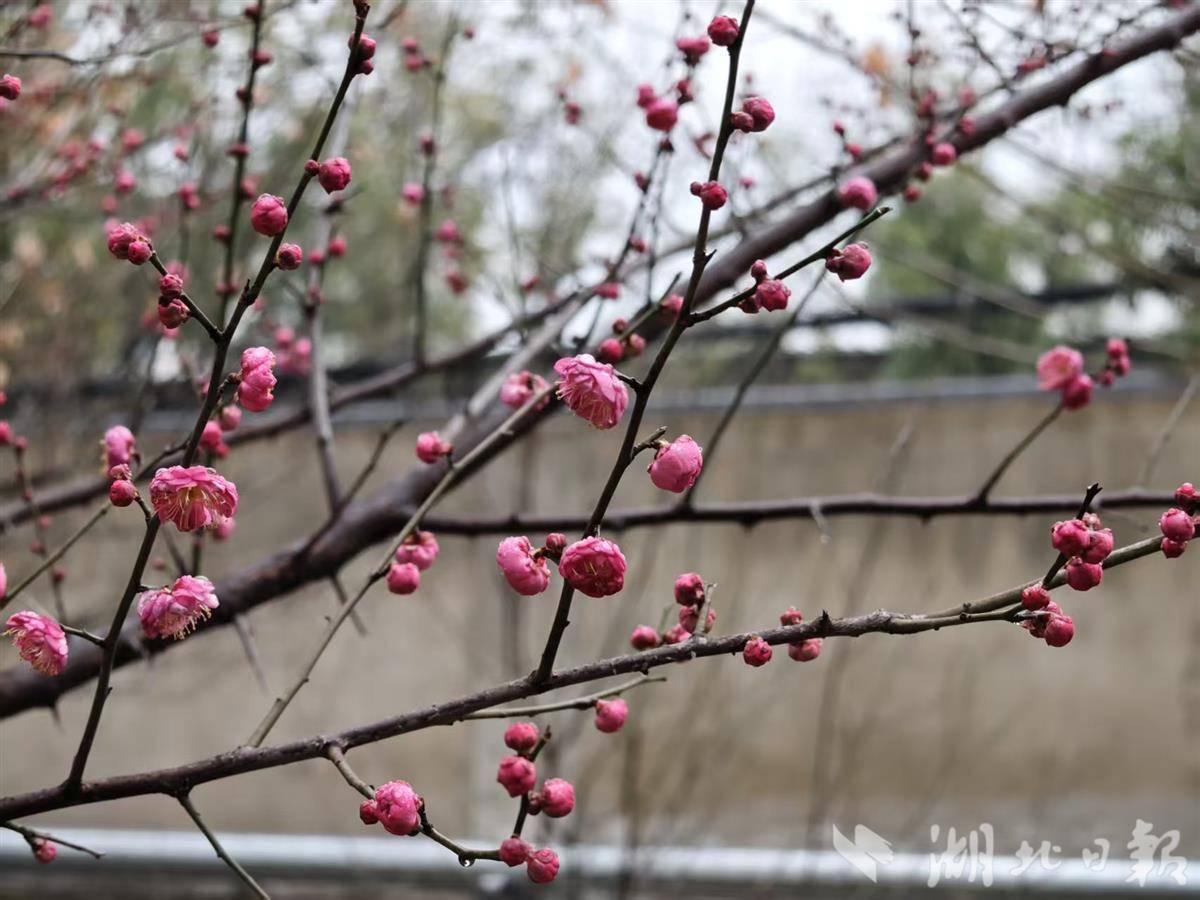 记者寻芳湖北日报传媒集团家属大院,发现红梅果然提前报春吐蕊,与腊梅争艳。在寒风冷雨中,腊梅含露,红梅凝珠,黄红交映,别是一番风味,令人不由得驻足赏玩。难得的是,小区居民种植的菊花仍然怒放,月季娇艳欲滴,红艳艳的三角梅与山茶花正在比拼,这真是一个别样的冬季呵。